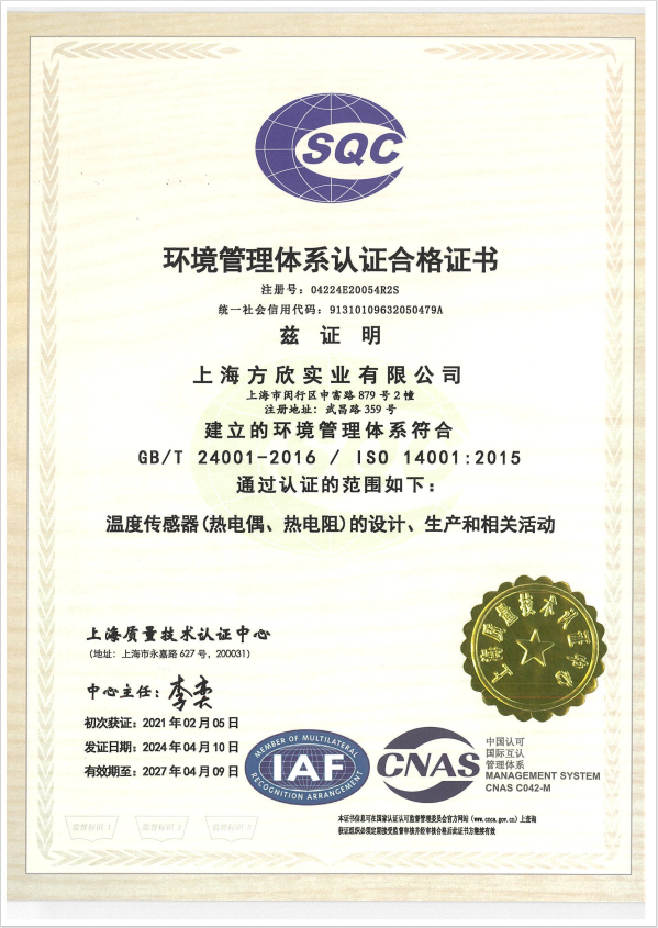 環境管理體系證書